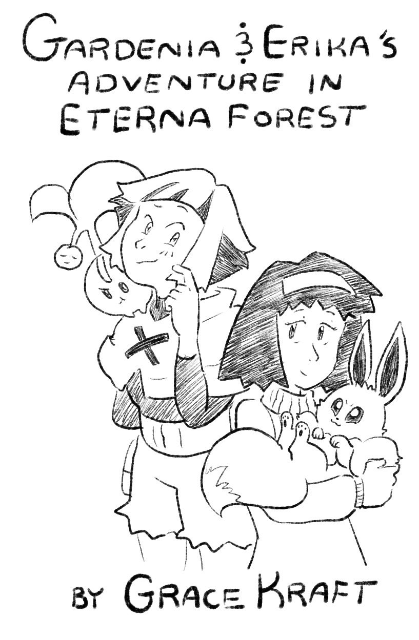 A mini zine featuring a comic about the Grass type Gym Leaders Gardenia and Erika training in the Eterna Forest!